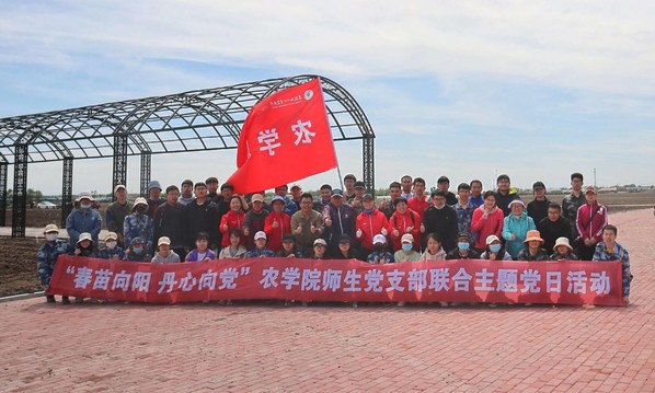 5月15日,农学院组织50余名师生党员参加了以“春苗向阳 丹心向党”为主题的联合党日活动。此次活动是学院落实“学史力行”开展的系列实践活动之一,主要内容是参加学校安达基地农作物标本圃播种生产义务劳动。