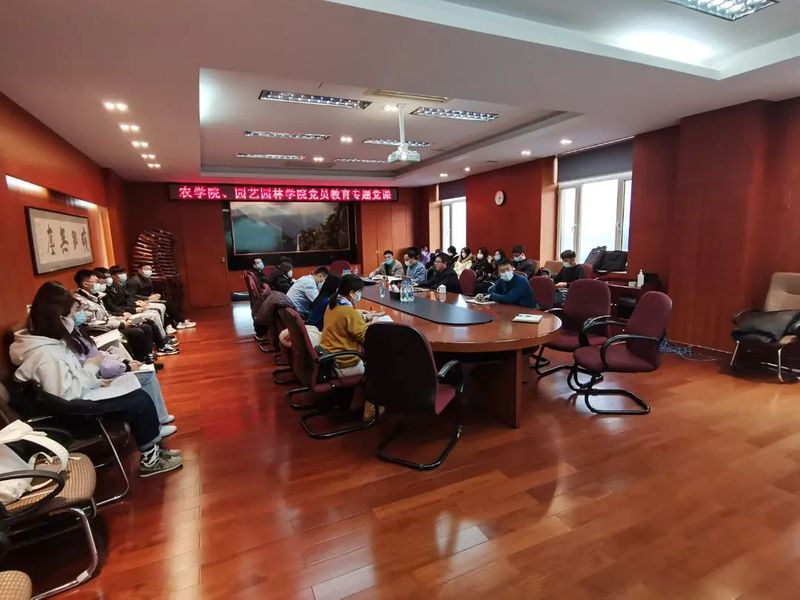 12月8日下午,在主楼905会议室,农学院、园艺园林学院共同开展党员教育专题党课,特邀校党委组织部副部长王天亮主讲,党课以线上线下结合的方式进行,两个学院的党委成员、党支部书记、部分学生代表在现场听课,其余师生党员在线上聆听,农学院党委书记张长青同志主持。