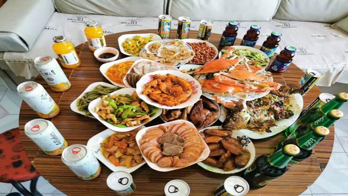 先说说这东北美食,烧烤、火锅、麻辣烫、烤肉等等真是屡试不爽啊,鸡鸭鱼肉更是应有尽有,还有逢年过节必备的酱肘子、哈尔滨红肠、蘸酱菜……,随着货运物流的畅通无阻,海里的珍馐也是应有尽有,爆竹声中庆欢年,这一刻五湖四海的美食都被人们搜罗到了饭桌上来,希望在这欢庆之时共享美味家宴。在每个人的心中都有一个年夜饭中的“必杀”菜,我心里的就是红烧肉,每一块都是油亮多汁,滑嫩可口,每一块的大小都在食指一半左右,吃过以后欲罢不能,这就是我心中的“必杀”菜!当然北方的美食怎会只有这些呢,粘豆包,蒸年糕,都是我最期待的时刻,如今看着碗里粘糯的豆包,香软的年糕,想想嘴巴里新做的牙冠,真的是后悔莫及。在小县城中有着大城市没有的喜庆热闹,满城绽放的烟花映在每个人的脸上,更映在每个人的心里,年,还是我们熟悉的味道!