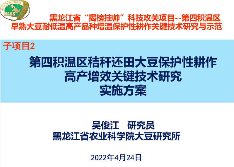 黑龙江省农科院大豆所吴俊江研究员汇报子课题二实施方案