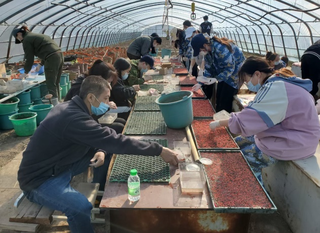 马铃薯团队师生来到位于克山农场的试验基地进行播前种子准备工作,为即将到来的播种工作准备种薯材料,并进行了杂交种子的播种工作,为优良马铃薯品种的选育打好基础。