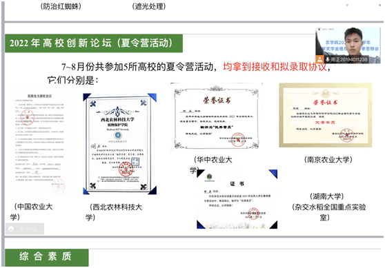 10月4日下午,农学院召开2021-2022学年国家奖学金拟推荐人选评审答辩会。答辩委员会成员由学院党委副书记、分团委书记、19级-21级年级辅导员以及19级-21级班主任代表组成。会议采取线上的方式进行,由学院党委副书记王洋主持。