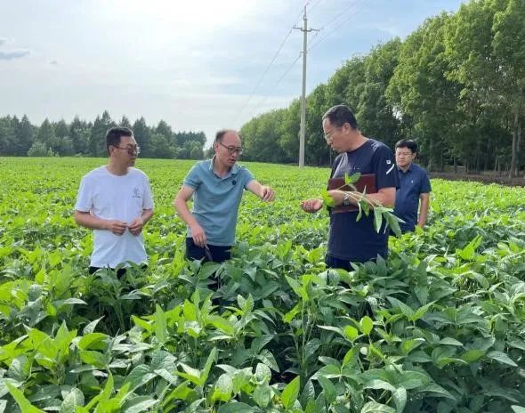 2022年7月,张玉先教授先后到八五五农场第八作业站大豆试验示范项目展示区、农业科技园区等地进行技术指导,对各项试验处理进行定点调查。与相关项目负责人针对各项试验前期实施调查情况及下步工作开展计划进行了沟通,并就优化种植技术、提高单产等内容提出了合理化建议,为全面推进大豆绿色高质高效创建项目有序的开展夯实了基础。