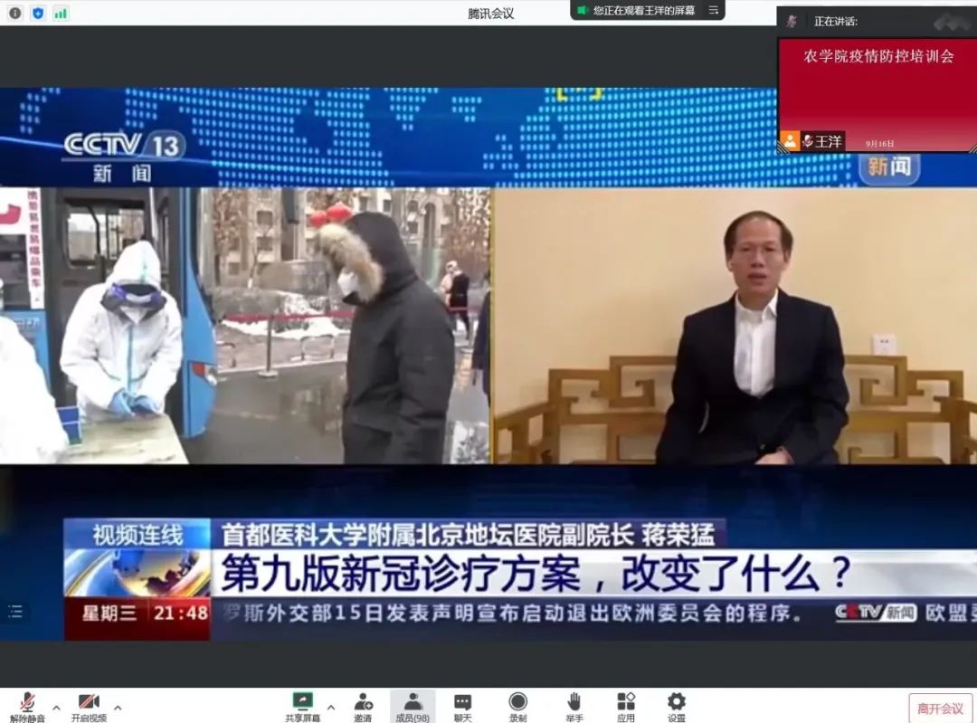 按照学校疫情防控教工管理组下发《关于开展疫情防控培训的通知》的要求,为切实加强教工疫情防控意识,掌握疫情防控基本常识和相关知识,9月16日农学院召开了疫情防控培训会,全院教工参加了培训。