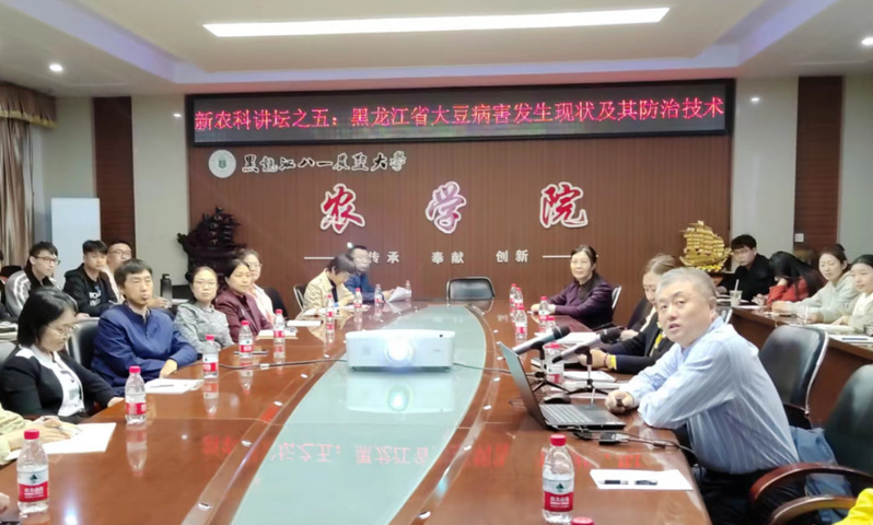 与会专家及师生围绕左豫虎教授的报告内容展开了激烈讨论,并针对黑龙江省最新发现的大豆病害病原菌鉴定、流行分析等方面提出了问题和建议。与会人员通过此次讲坛进一步加深了对大豆病害的了解,开拓了科研思路及视野。