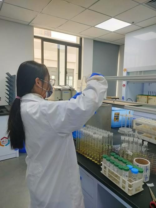 有机组郑佳雪4月3号-4月7号,学习了固体土壤萃取有机物前处理的实验。4月8号学习了非甲烷总烃气体的测定。4月8号至今学习了液液萃取,水中石油烃、草甘膦、苯并芘的前处理。有机组的任务相对来说比辛苦些,经常在加班,有很臭的污泥会把衣服熏在学习过程中,她能明显的感受到自己的进步。