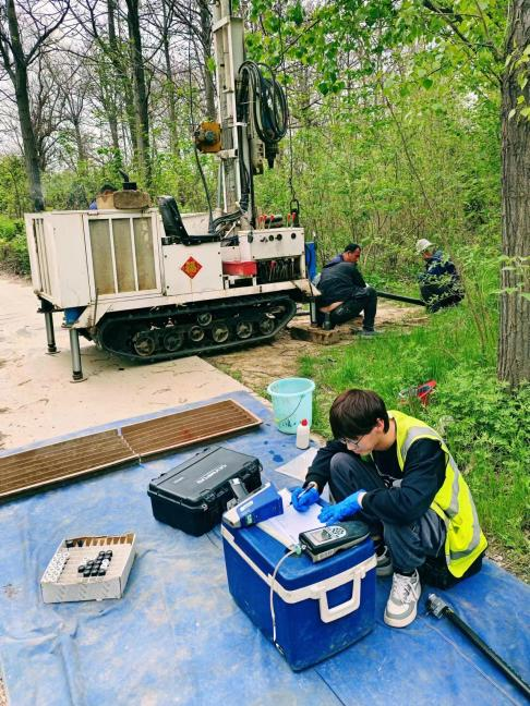 采样一组吴殿平的工作内容是土壤采样,主要负责气体检测以及土壤金属检测,并做数据记录,和采样过程中的一些操作流程的记录。工作的环境都是在户外的田间地头,每天的工作内容基本一样,能从中积累很多经验,也能和同事一起学习交流。
