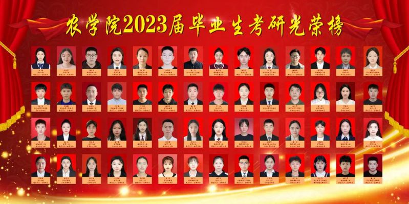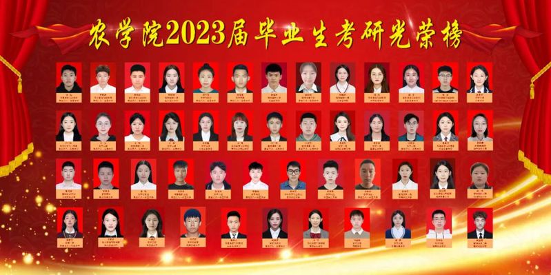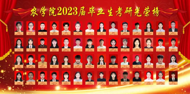 农学院2023届本科毕业生377人,考取硕士研究生163人,其中推免27人;升学3人以上的寝室27个,其中共有10个寝室全员顺利“上岸”。充分展现了农学学子互帮互助,携手同行,共同进步的良好学习风尚。下面,让我们通过考研光荣榜,一睹他们的风采!