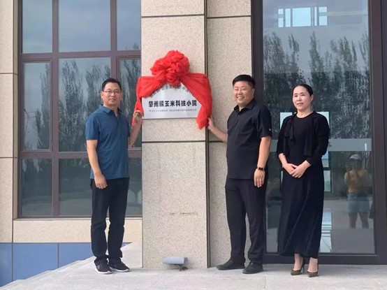 校县双方首先来到了肇州糯玉米科技小院,在小院校方负责人张有利和企业方负责人张雪松介绍下,了解了科技小院在新型肥料研发与应用、糯玉米加工与销售、研究生科研与社会服务、科技助农四零打造与实践等介绍后,曲傲副县长与郭永霞院长为农学院和老街基产业合作的“高端食用玉米产业研究院”揭牌,武加行县长与张有利副教授为“肇州糯玉米科技小院”揭牌。