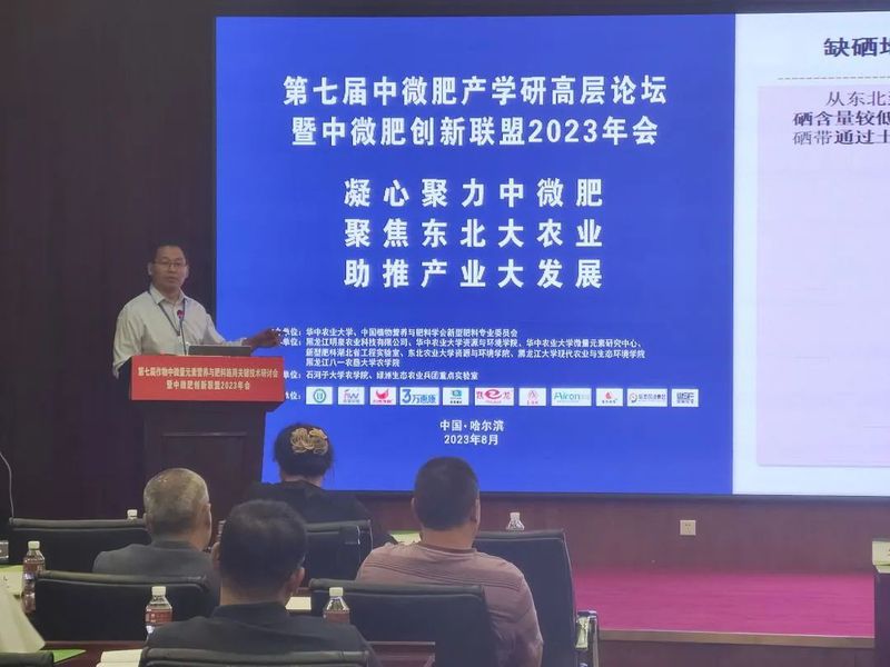 8月4日-6日,由华中农业大学、中国植物营养与肥料学会新型肥料专业委员会主办,华中农业大学资源与环境学院、华中农业大学微量元素研究中心、东北农业大学资源与环境学院、黑龙江大学现代农业与生态环境学院、买球赛的app官网等单位承办,石河子大学农学院、绿洲生态农业兵团重点实验室协办的第七届作物中微量元素营养与肥料施用关键技术研讨会暨中微肥创新联盟2023年会在黑龙江哈尔滨市召开。本次会议以“凝心聚力中微肥、聚焦东北大农业、助推产业大发展”为主题,50余名专家学者围绕中微量元素、品质农业与人体健康;肥料标准化、安全性与中微肥产业发展;国内外钙、镁、硼、铁、锌、硅、硒等元素科研进展、应用现状及发展趋势;富锌、富硒等生物营养强化技术支撑下的功能农业发展现状与趋势等十个议题进行了学术报告和深入交流。来自国内植物营养与新型肥料研究领域的20余家高校、科研院所和知名企业的专家学者、科研人员及研究生等100余人参加了本次会议。买球赛的app官网张有利副教授参加会议。