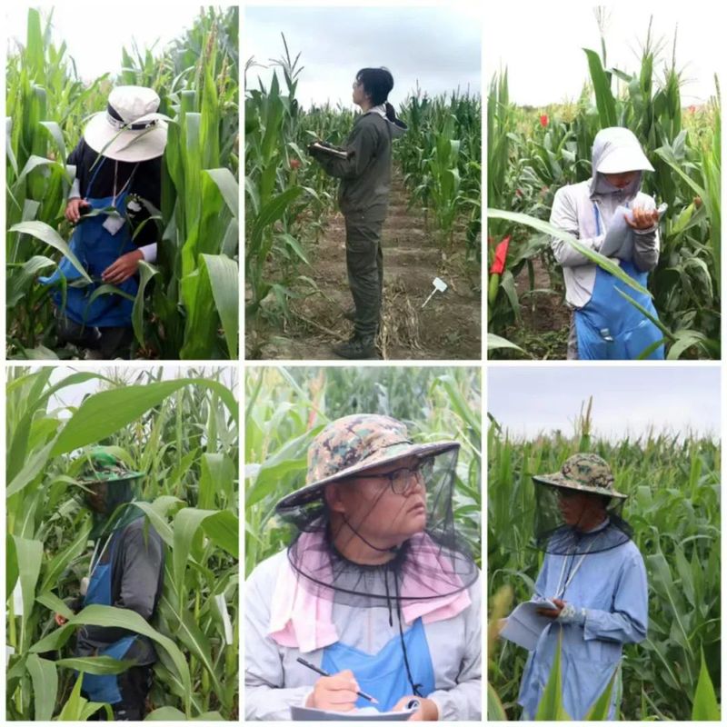 在授粉工作中,虽然天气炎热,但是师生们穿着长袖长裤,衣服经常是几湿几干。但这并不影响师生们的工作热情。调查、套袋、授粉,繁重的工作并没有压倒年轻的脊梁,反而将其磨炼的更加坚挺。在学生中,有刚开始接触农业的大一同学,也有熟练授粉工作的研究生。大家互帮互助,分工合作,保质保量的完成授粉相关工作。课题组师生坚持把工作做在前面,为了保证授粉效率,学生经常要踩着露水下地,顶着三伏天的太阳授粉。即使暴雨过后,地里泥泞不堪,大家也都换上雨靴,尽可能的完成当天的工作任务。