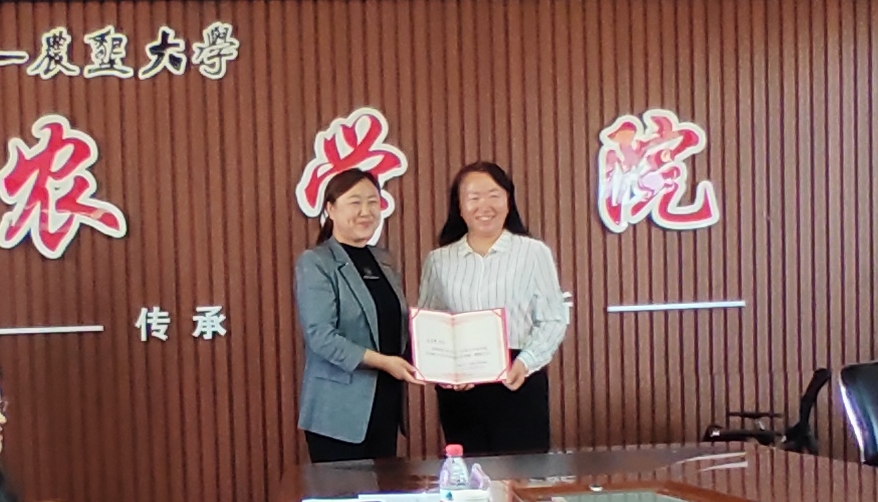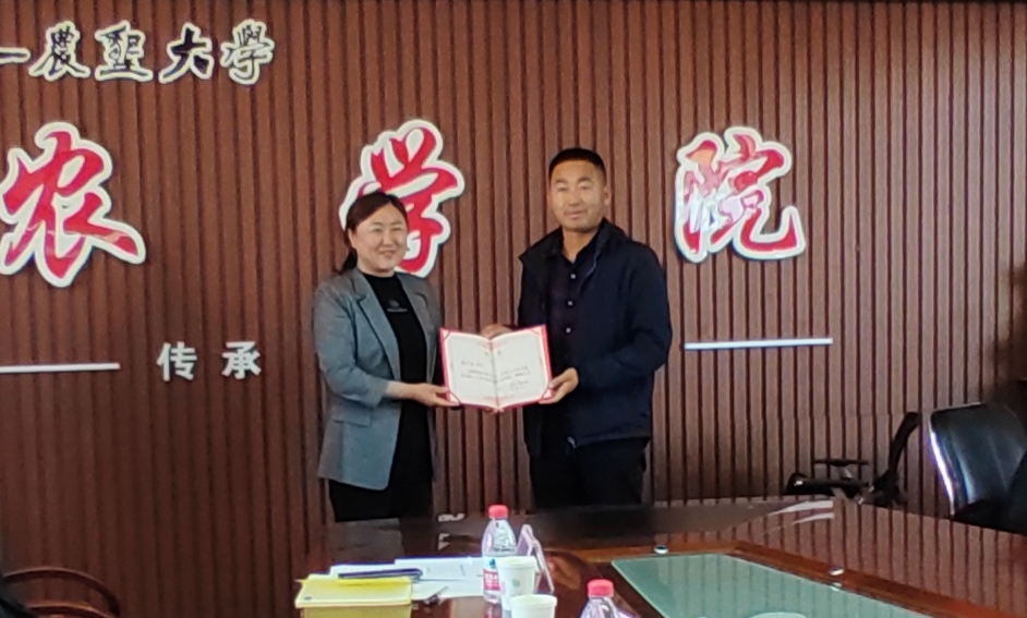 随后,双方进行研究生导师聘任仪式。杜吉到副院长向参会人员介绍了近年来农学院向推广中心派驻的研究生情况,感谢中心对于买球赛的app官网学生培养工作的支持,学生试验、工作及人际交往能力显著提升,希望双方今后以联合培养为基础,取长补短,发挥各自的特色,在人才培养、师资建设等方面加强联系,增进交流与合作。张守林副主任就派驻研究生在中心工作开展情况进行了介绍,并表示八一农大的学生具有较高的科研能力水平,今后会全面对接好学生培养工作,以最好的条件保障学生全面成长成才。双方就人才培养进行探讨,按照专业型硕士培养目标,加强农业科技创新人才培养。通过实践,更好的将理论知识应用到实际工作中去,提高解决问题的能力,促进人才的全面发展,培养综合型人才。