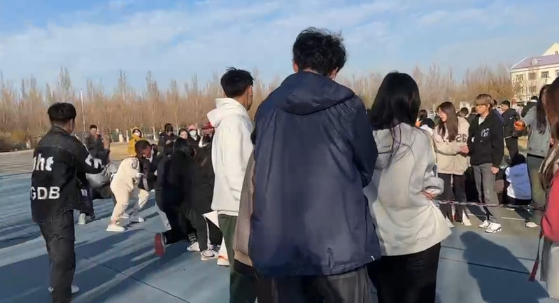 首先各班体委聚集在一起进行比赛前的抽签环节,通过抽签进行分组决定各班的比赛顺序和队伍。抽签结束后比赛现场人声鼎沸,队员们精神饱满地站在赛场旁,准备迎接比赛的开始。
