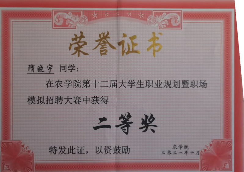 第十二届大学生职业规划暨职场模拟招聘大赛二等奖