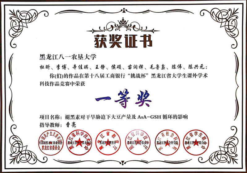 第十八届工商银行“挑战杯”黑龙江省大学生课外学术科技作品竞赛一等奖图片