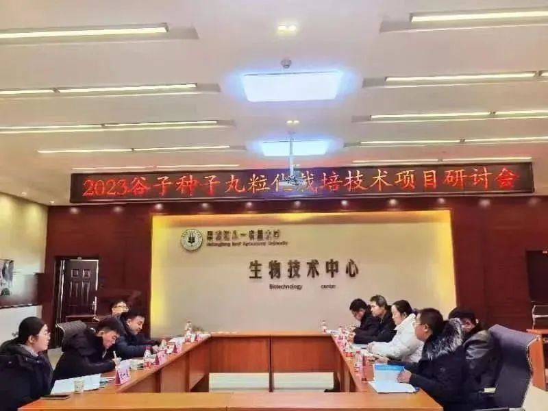 12月9日,黑龙江省杂粮产业协同创新推广体系谷子种子丸粒化栽培技术项目研讨会在买球赛的app官网召开。本次会议依托黑龙江省杂粮产业协同创新推广体系,将谷子栽培育种专家、种子丸化专家、下游生产企业及投资方召集在一起,研讨利用谷子种子丸粒化技术集成解决黑龙江省谷子生产中存在播种密度难控制、田间保苗率不理想、间苗费工等问题。省杂粮体系首席专家农学院杜吉到教授等5人、种子丸化团队贵州大学李振华教授等4人参加会议。