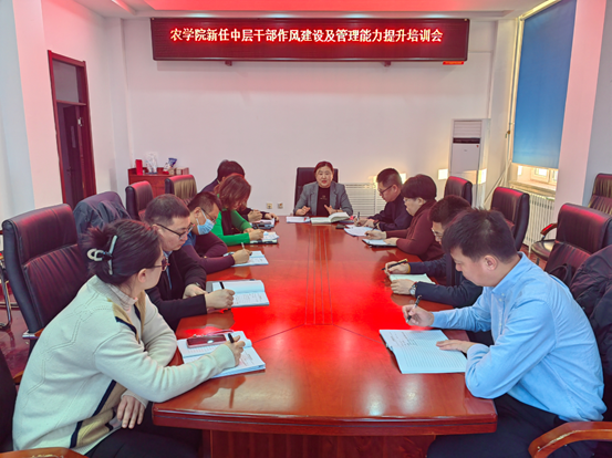 为了进一步提高学院中层干部队伍的综合素质,更加高效的开展和落实本科教育教学审核评估工作,为学院各项事业高质量发展提供坚实保障,1月18日,学院召开新任中层干部作风建设及管理能力提升培训会。学院领导班子、副处级组织员及新任职的中层干部参加会议,院长郭永霞、副书记、纪委书记王洋、副处级组织员闻世宇分别作培训报告。