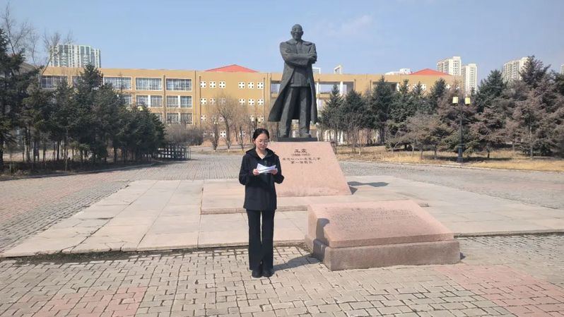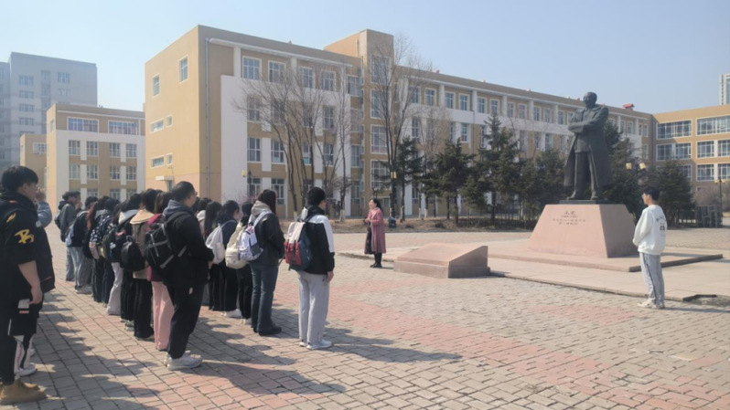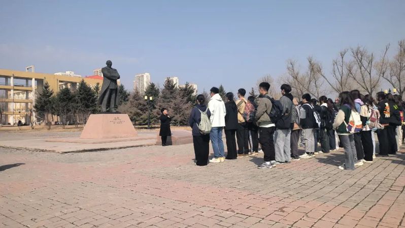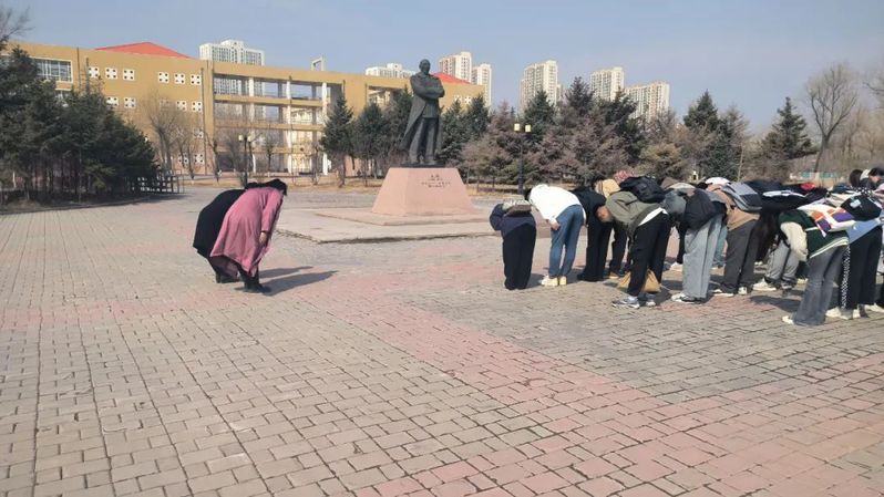 同学们进行了缅怀仪式,对王震将军像进行三次深鞠躬。