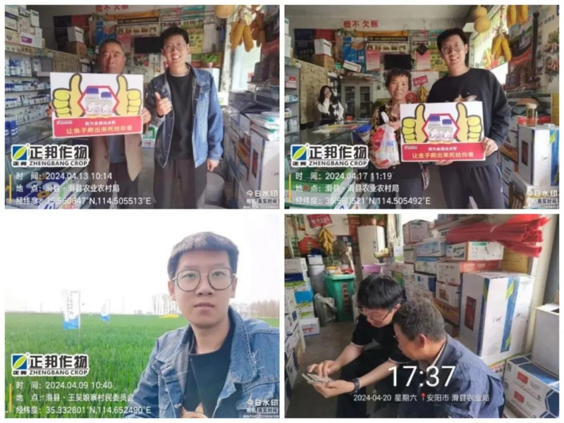 四月七日,我们小组成员分别到达山东淄博,河南安阳,山西运城。并由公司分配的带教师傅对我们开展了为期两天的培训,在这期间,我们了解公司主要核心产品(8%高效氯氟氰菊酯、田永丰套餐、闲滁等)、工作流程以及工作环境。培训结束后,带教师傅会带领我们下乡,去往不同乡镇开展工作。前期工作主要是产品了解学习以及客户拜访,通过与客户交流了解当地大田环境经济作物环境和主要农作物,使我们可以清楚的知道作物主要病虫害,利于我们推广公司产品。