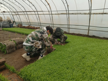 我在农场实习的25天中一直在858农场第一管理区进行生产实习,管理区的主任向我们讲解水稻生产全过程和生产中对水稻的防护措施,并且近年来农场越来越现代化,科技化,建设了多个智慧大棚,在办公区进行统一管理,可以实时监控棚内温度,湿度,土壤情况,稻苗生长情况。并且在五一期间进行水稻插秧工作,在大棚区内与农民一起进行揭苗,卷苗等工作。在这期间,我了解到插秧机的工作原理,了解插秧机各个部位的应用。在858农场的我们,人际交往和团队合作是我们很重要的收获.在一开始指导老师为我们分好了几个组别,分别负责不同区域的工作。于是乎我们就以组为单位进行劳动工作,在这过程中,我们更加体会到团队合作的重要性,因为并不是你个人完成了自己的任务就可以了,而是要全组完成的固定任务才能下班,所以我们经常会在完成自己任务的同时,到别的大棚给以支援。