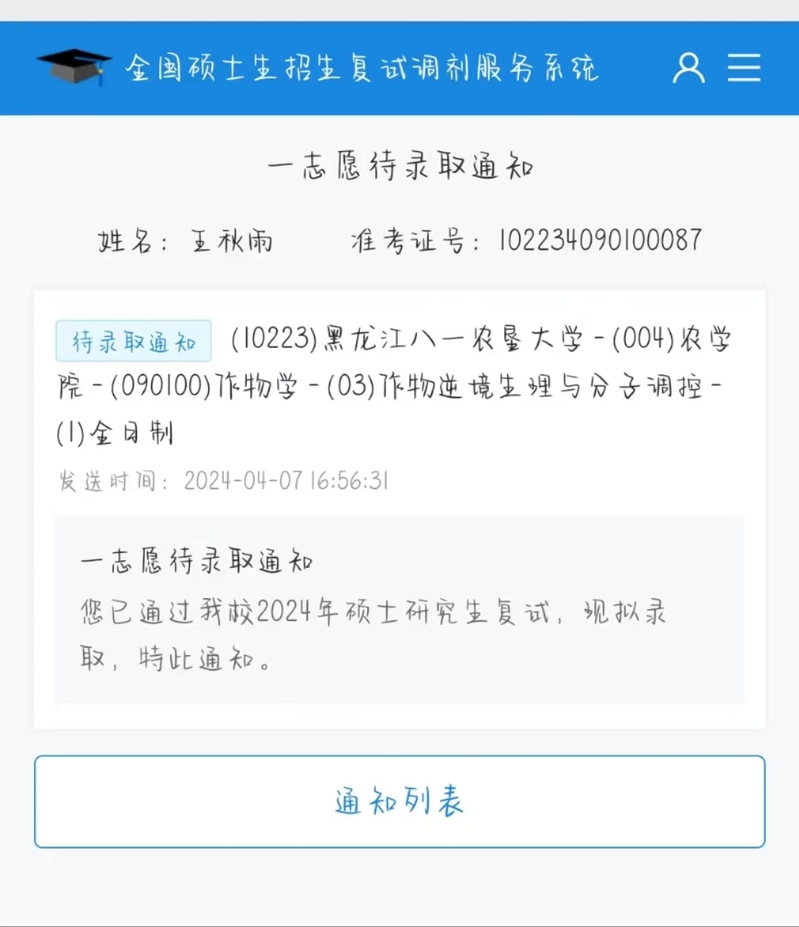 二号床,王秋雨,2020级农学专业学生,考取黑龙江八一农垦大学,奋发向前,成就梦想