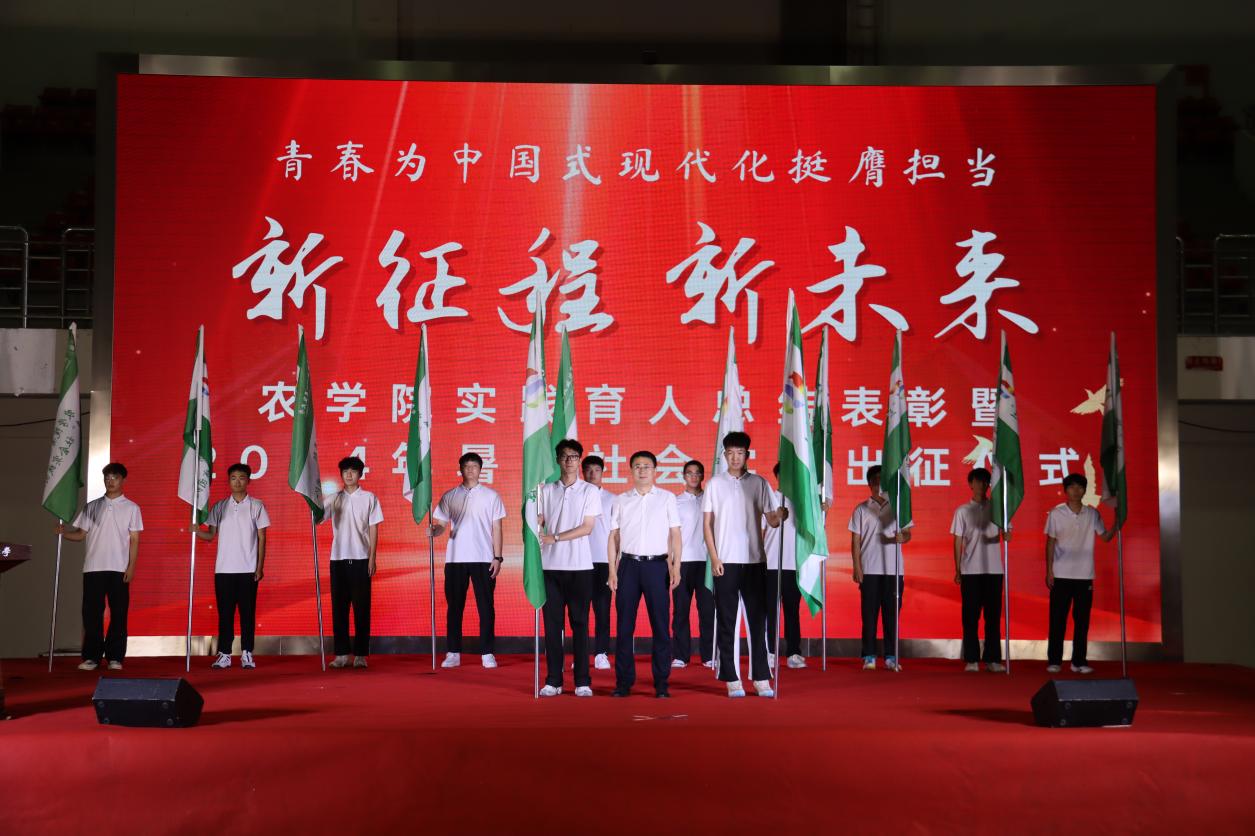 在出征仪式上,学院分团委书记黄伟东宣读了《农学院2024年暑期社会实践方案》并介绍了学院暑期社会实践报名基本情况,截止目前,学院组建实践团队170支,700余人次参与,在全国20余个省市160余个地区开展实践,同时还组建22支实践团队参与全国农科学子联合实践行动,并与东北农业大学、吉林农业大学联合组建团队,共同奔赴全国乡村治理示范村镇和重走习近平总书记的考察路线开展联合实践行动。社会实践指导教师王勃和社会实践学生代表包舒心分别作了表态发言。