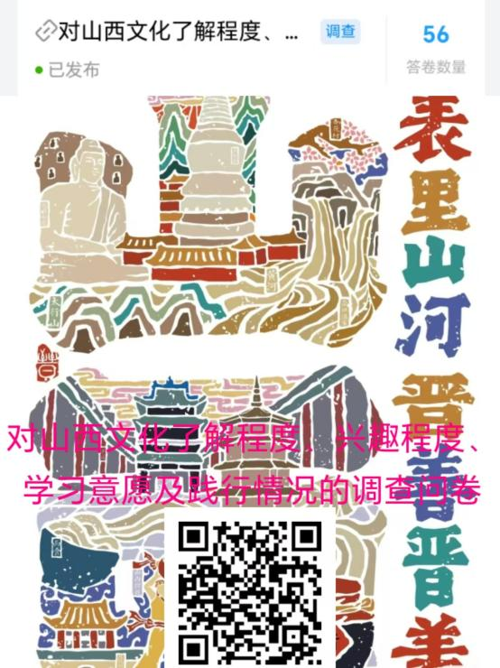 为深入学习推广三晋优秀文化,实践队伍成员围绕三晋文化制作了网络调查问卷和线下访谈,共收集到56份有效调查问卷。经过分析与讨论,得到的问卷结果为后续的宣传奠定了实践基础。