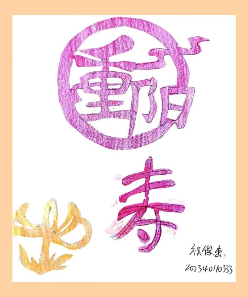 同学们的作品主题多样,风格各异。有的作品以“寿”字为主题,寓意长寿安康;有的作品则以“菊花”为元素,象征高洁与长寿;还有的作品通过描绘老年人的生活场景,展现了他们乐观向上的生活态度。每一件作品都凝聚了同学们的心血和智慧,也传递出他们对长辈的真挚情感。