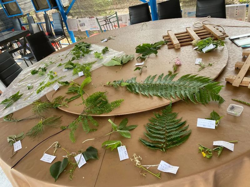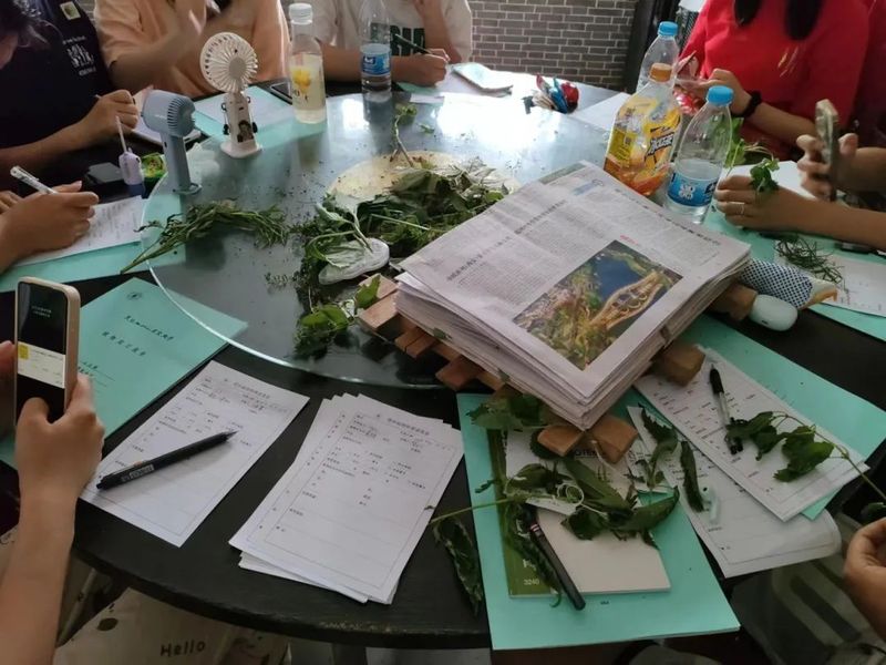 下山后,同学们将采集的植物贴上标签,使用工具制成标本,撰写植物调查表,进一步加深了对于植物知识的认知。