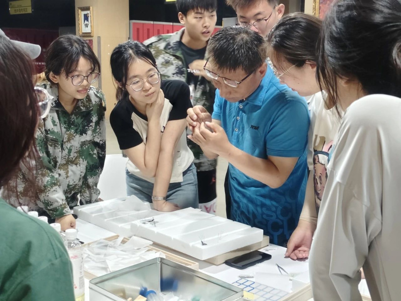 昆虫学书本上的知识生动地展现在眼前,通过老师地介绍,同学们对昆虫更加了解,白天,老师带着我们去爬雪道,去参观以《暴风骤雨》的原型地黑龙江省尚志市元宝村建造的“元茂屯”,边欣赏亚布力的自然人文风光,边捕捉昆虫,边了解昆虫。到了晚上,一部分同学利用昆虫的趋光性去诱捕昆虫,一部分同学给昆虫定型,制作标本,将昆虫独特的美定格在标本盒里。