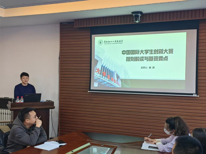 赵赫从自身履历中的创业故事进行讲述,通过解读大赛文件及评审规则、解析新农科项目如何参赛、项目如何孵化以及培育等多个方面进行解读,通过不同作品的展示和对比,使参加培训的师生明确参赛目标以及相关模式;同时,赵赫通过讲述学院相关教师指导竞赛获奖经历、项目整体打磨过程,让师生明晰需要准备哪些素材、如何准备相关材料;最后,赵赫通过PPT制作逻辑向在座师生展示了每一页的内容,增强了培训师生参加大赛的信心。