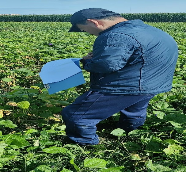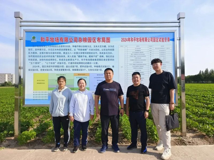 2024年,团队参与北大荒农垦集团有限公司及地方有害生物及农作物病害防控任务,定期到农场进行预测预报,主持了多项国家重点研发计划课题及子课题,通过项目示范,带动成果落地与示范推广。一年来,4月赴八五五农场调研指导植保工作,对大豆、玉米播种后期的封闭管理提出了指导性意见,进一步提升了农场病虫害监测能力。