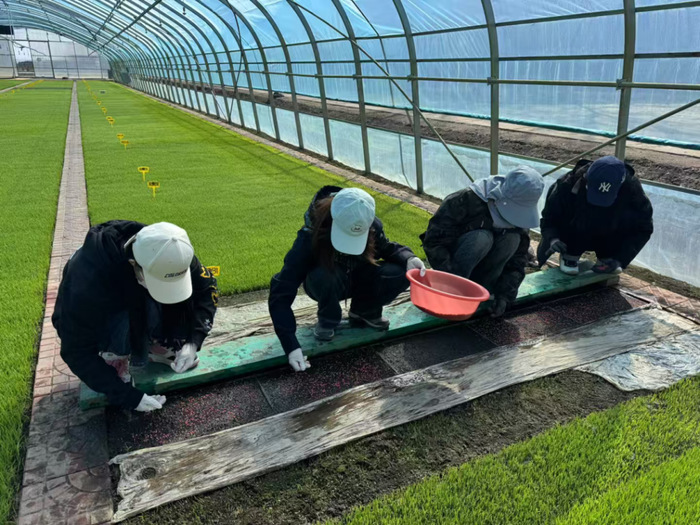 在水肥土管理环节,同学们亲手操作何时浇灌、水量多少,何种肥料配比、施用时机,秧床如何补土,大家亲自动手,只为掌握培育优质秧苗的“黄金法则”。