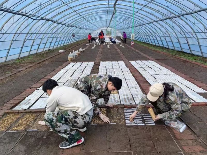 实习感悟:在阿城农场的育苗大棚里,我们这些“新手农人”第一次参与水稻播种,体验了一次传统农事的魅力。从制作种子标签到筛选种子,再到浸种处理,每一个步骤都充满了对细节的把控。制作种子标签时,我们认真记录每一类种子的信息,确保后续播种的精准性。筛选种子时,我们仔细挑选出饱满的种子,为后续的生长打下基础。浸种处理则让种子在播种前充分吸收水分,为发芽做好准备。播种时,我们学着老师的样子,将稻种均匀撒下,感受着指尖传递的温度与力度。覆土环节,我们传递营养土,小心翼翼地控制厚度,仿佛在呵护一个生命。覆膜时,团队默契配合,为种子营造温暖的“襁褓”。在这个快节奏的时代,阿城农场的传统工序让我们慢下来,用心感受生命的脉动。8小时的弯腰播种,让我们与世界隔绝,专注地体会耕耘的意义。指尖触碰土壤的那一刻,时间变得具体可感,每一粒种子都在诉说着生长需要耐心和温度。汗水滴落,泥土芬芳弥漫,我们的心也变得宁静而充实。