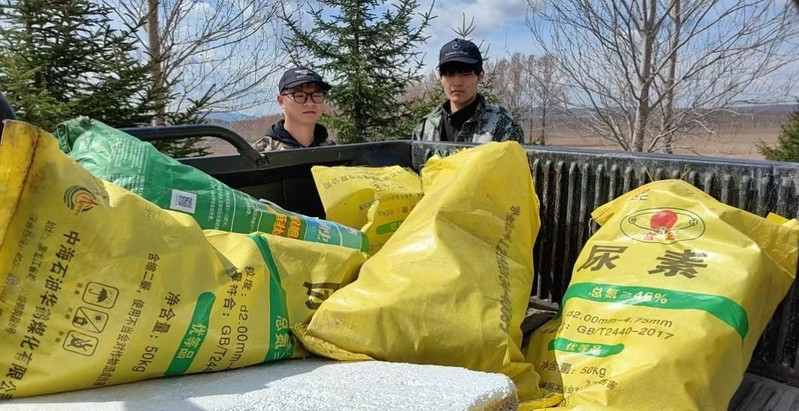 (4)实习期间,我在二十六连队的田间观察、参与和学习了大豆种子的播种工作。855播种的主要大豆品种为垦农34,在专业农技人员的悉心指导下,我系统掌握了此次播种工作中的关键要点:不仅了解了所用化肥的具体类型和特性,明确了适宜本地土壤和气候条件的大豆种子品种,还通过实地操作,精准把握了合理的种距、播种深度等技术参数。并且我亲身参与了大豆种子和化肥的搬运、添加工作了,体会实际劳动。在播种工作中,主要工作是协助农民为播种机添加种子和化肥,整理化肥袋和种子袋,依旧在播种机播种后覆土踩实。