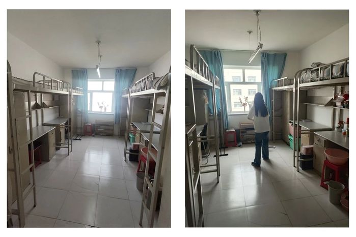 志愿者们手持扫帚、抹布等工具分组行动,仔细擦拭门窗玻璃、清理墙角积灰,将桌椅归置整齐,连床底角落的杂物都一一清扫。原本因搬迁略显凌乱的宿舍,在他们的忙碌中恢复了窗明几净的模样,地板倒映着灯光,书桌整齐如新。