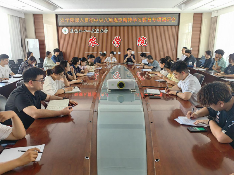 为深入贯彻习近平总书记关于加强党的作风建设的重要论述,继续深入贯彻落实中央八项规定精神,6 月 27 日,农学院召开深入贯彻中央八项规定精神学习教育学风建设专项调研会,学院党委书记姜楠、副书记白巍、教师代表、辅导员代表、班主任代表和学生代表齐聚,聚焦学风建设,共同为学院学风建设建言献策。