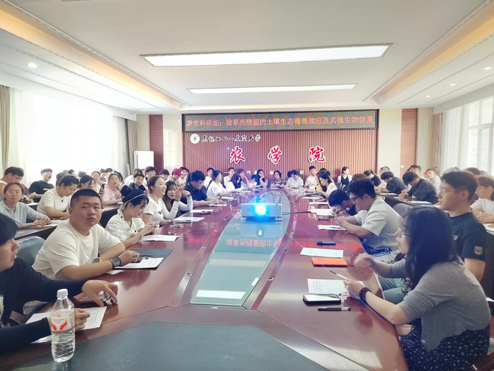 报告结束后,胡扬博士与参会师生就东北黑土区除草剂残留的生态毒理效应、微生物修复技术的田间应用潜力及多元除草剂复合污染防控策略等关键问题展开深入交流。通过胡扬博士的报告,参会师生对黑土区除草剂残留风险、复合污染的协同毒性机制以及微生物修复技术的创新突破有了更全面的认识,为黑土保护与粮食安全协同治理提供了新的科研视角与实践思路。