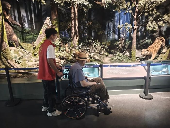 活动中,志愿者们分工明确、各司其职。在安检岗位,他们以严谨细致的态度协助工作人员核查游客物品,筑牢安全防线;在展厅内,志愿者们化身“文明劝导员”,礼貌引导游客有序参观,维护场馆秩序;面对需要帮助的游客,他们主动提供拍照服务、讲解展品背景,用热情服务传递温暖。此外,志愿者们还专项服务了哈尔滨第四中学的研学团队,通过随队讲解、互动问答等形式,帮助中学生深入理解展品背后的红色故事,让革命历史与奋斗精神在代际传递中焕发新的活力。