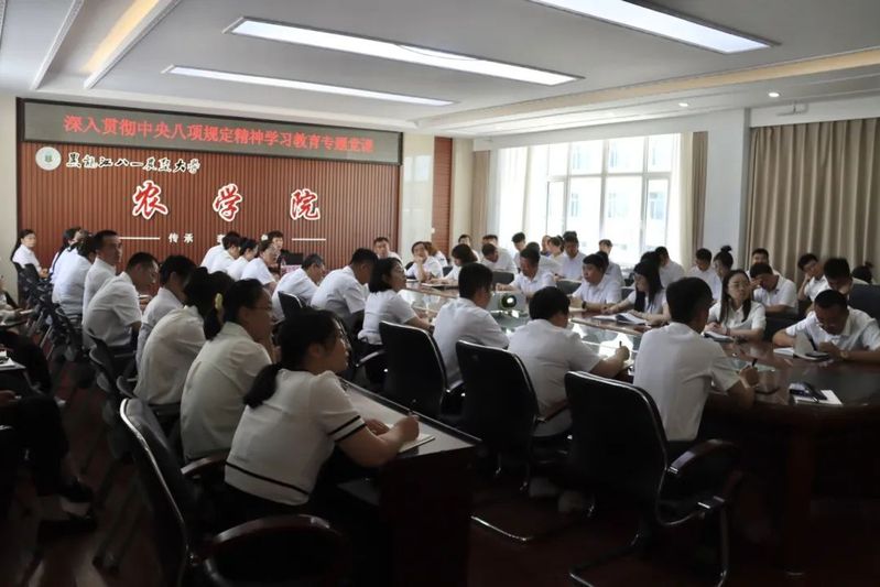 为深入学习贯彻党的二十大精神,落实全面从严治党战略部署,推动深入贯彻中央八项规定精神学习教育走深走实,助力学校事业高质量发展,2025年7月2日,李翠霞校长深入农学院为师生党员讲授专题党课。校人事处党支部全体党员、农学院教师党员和学生党员代表参加。学院党委书记姜楠主持会议。