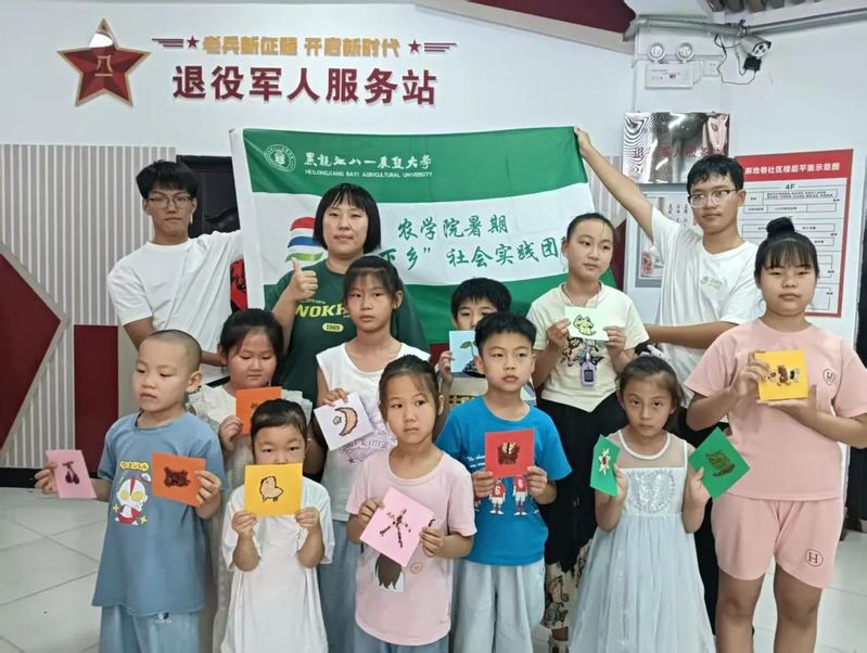 秉持农学类专业初心,实践队充分发挥学科特色优势,于 7 月 20 日面向周边社区青少年儿童,打造了一场 “知识讲授 + 动手实践” 双轨并行的农业主题研学活动。实践学生们结合专业所学,以专题讲座为引,深入浅出讲解种子内部结构、生长规律与分类知识,辅以标本展示、显微观察等直观形式,让孩子们真切感知种子的奥秘;同时,融入种子艺术创作环节,将农学知识与美学实践巧妙结合,更以北大荒精神为内核开展思政教育,引导青少年领悟农业情怀与奋斗精神。