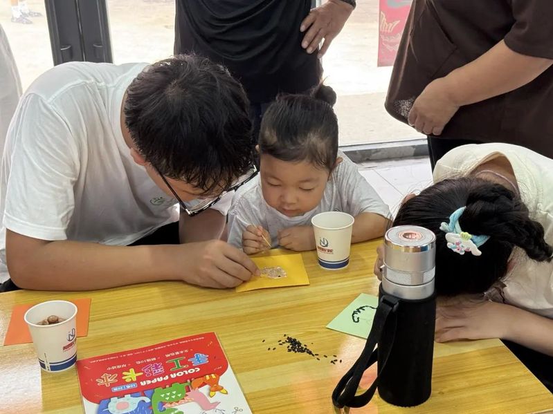 为扩大实践活动辐射力、普及农业科学知识、传承农耕文明,实践队组织队员返乡开展 “小小种子探索家” 暑期青少年科普活动。活动现场,队员们通过种艺作品实物展示、农业主题记录短片播放、趣味互动问答等丰富形式,向当地村民与中小学生生动解读种子多样性的奥秘、农业科技创新的成果、粮食安全的重要意义,同时细致讲解种子艺术的创作理念与实践方法。