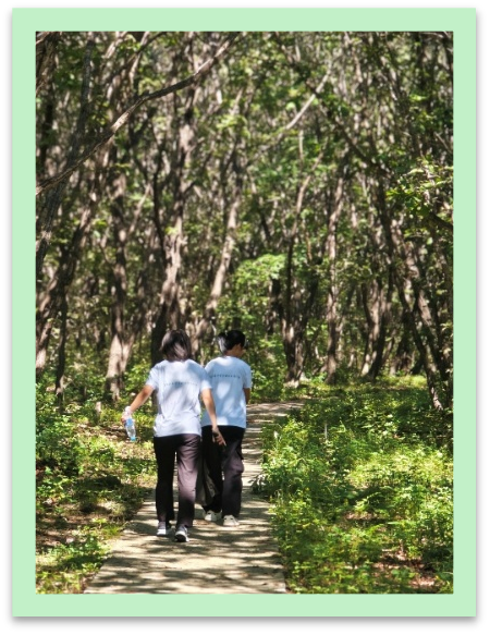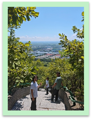离开密山前,实践团攀登了老校区后的裴德峰。山顶劲风呼啸,俯瞰来时路,蜿蜒的山路如绸带缠绕山间,脚下的石阶已缩成点点微光。“北大荒人把荒滩野甸熬成千里粮仓,不就像这攀登吗?一步一印,终成壮阔。”一位同学的感慨引发共鸣。从登山的体悟到农业实践的思考,同学们豁然开朗:“务实求真”从不是抽象的概念,它藏在每一步扎实的脚印里,藏在扎根田野的坚守中。下山时,每个人的脚步都格外沉实——这份“脚踏实地”的感悟,将成为他们未来投身农业科研的重要指引。