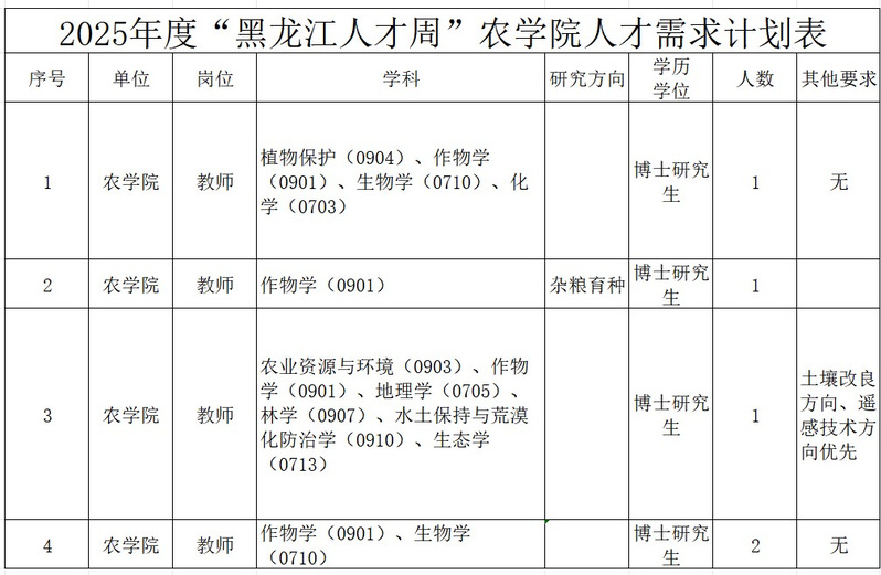 1.黑龙江八一农垦大学2025年度“黑龙江人才周”人才需求计划表