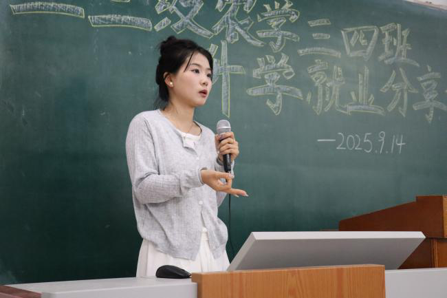 为帮助同学们更好地规划未来发展方向,明确升学与就业目标,树立正确的就业观、择业观,农学23(3)班、(4)班于2025年9月14日下午14:00在主楼东区201教室线上线下联合举办了一场以“升学与就业答疑”为主题的经验分享班会。本次班会特邀多位优秀毕业生进行经验分享,班会由班主任张海洋老师主持。