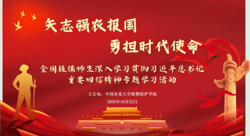 2025年10月22日,农学院师生代表参加了由中国农业大学植物保护学院主办的“矢志强农报国 勇担时代使命”——全国植保师生深入学习贯彻习近平总书记重要回信精神专题学习活动。该活动旨在深入学习领会习近平总书记在中国农业大学建校120周年之际,给中国农业大学全体师生回信的重要精神。本次回信引发热烈反响,习近平总书记在信中强调,要弘扬优良办学传统,矢志强农报国,深化教育教学改革,加强农业科技创新和成果转化应用,努力培养更多知农爱农的专业人才,为建设农业强国、推进中国式现代化作出新的贡献。回信内容让全国植保师生为之振奋。