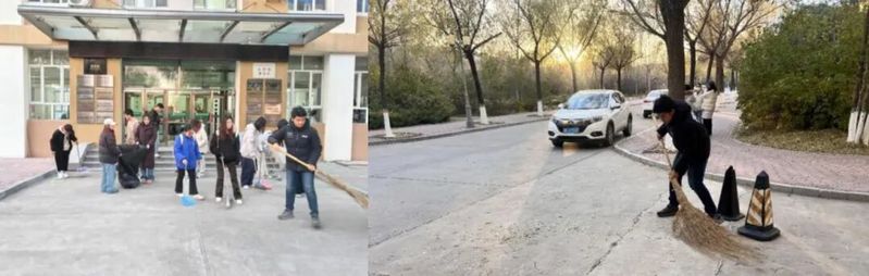 活动中,志愿者们携带扫帚、簸箕、垃圾袋等工具迅速投入战斗,大家分工协作、默契配合:有的负责对天井角落、绿化带边缘等卫生死角的杂物进行细致捡拾,有的专注于主干道落叶的集中清扫与装袋,有的则及时将垃圾转运至指定投放点。劳动现场热火朝天,志愿者们不畏繁琐、认真负责,用弯腰俯身的姿态、挥帚清扫的身影,生动诠释了“奉献、友爱、互助、进步”的志愿服务精神,彰显了农学院学子的责任担当与集体荣誉感。