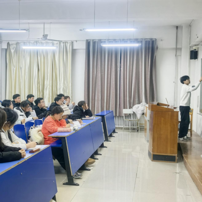 活动当晚,同学们准时进入教室,自觉上交手机,认真聆听张亮涛的激情讲解,展现了良好的学习风貌。