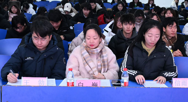 参赛选手依次登台,他们以深情的讲述回溯“一二·九”爱国运动中青年学子不畏强权、救亡图存的历史壮举,也以激昂的陈词展望当代青年在科技创新、乡村振兴、文化传承等广阔天地中的责任与担当。选手们紧密联系自身经历:有人分享在偏远乡村支教时见证的希望与成长,呼吁“将爱国情怀融入日常行动”;有人则援引陆璀等前辈上下求索、奔走呐喊的感人事迹,抒发出“强国有我,重任在肩”的青春信念。声情并茂的演讲,既有娓娓道来的深情,也有铿锵有力的宣言,深深感染了全场观众,一次次引发静默深思,又一次次赢得持久而热烈的掌声,活动中文艺表演环节精彩纷呈,为活动现场注入了蓬勃的艺术活力。最后,经过激烈角逐与评委的认真评议,王婉舒同学荣获一等奖;石丽美、李博两位同学荣获二等奖;陈鑫、孙维、王思为三位同学荣获三等奖;高堉婷、李欣泽、邓化瑞、高鹏宇四位同学荣获优秀奖。