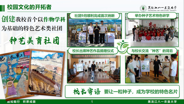美育沃土的开拓人:作为农学院种艺美育社团创建人,他勇做校园美育的“开拓者”,牵头组建全校首个以作物学为特色的艺术类社团。从无到有,他协助完成美育工作室装潢,策划开展特色活动10余次;其组织创作的省学运会种艺画获校领导高度评价,将专业之美融入艺术实践,为校园文化注入了独特的农科韵味。